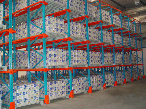 Drive-In Rack tối ưu hóa không gian có sẵn loại bỏ lối đi giữa các kệ chấp nhận nhiều tham chiếu như đường tải hệ thống thích hợp để lưu trữ đồng nhấtCác sản phẩm xoay vòng thấp với số lượng lớn pallet cho mỗi tham chiếu.